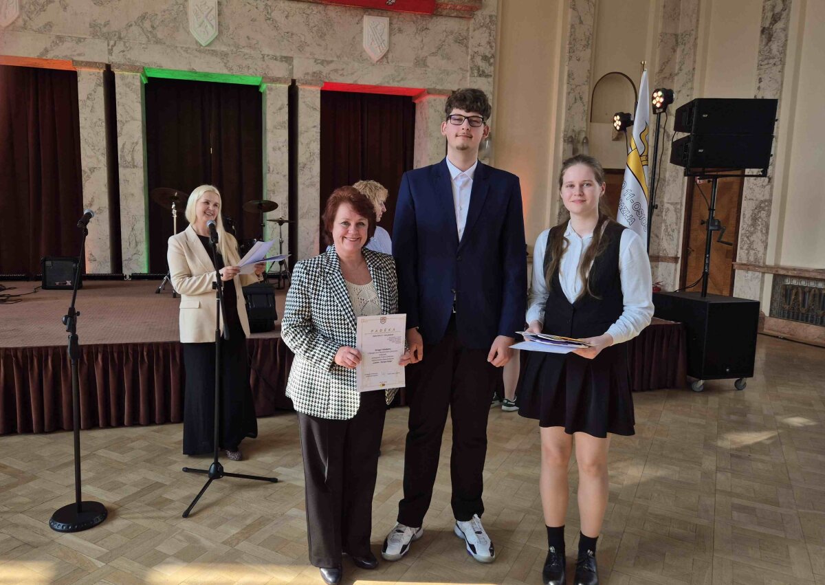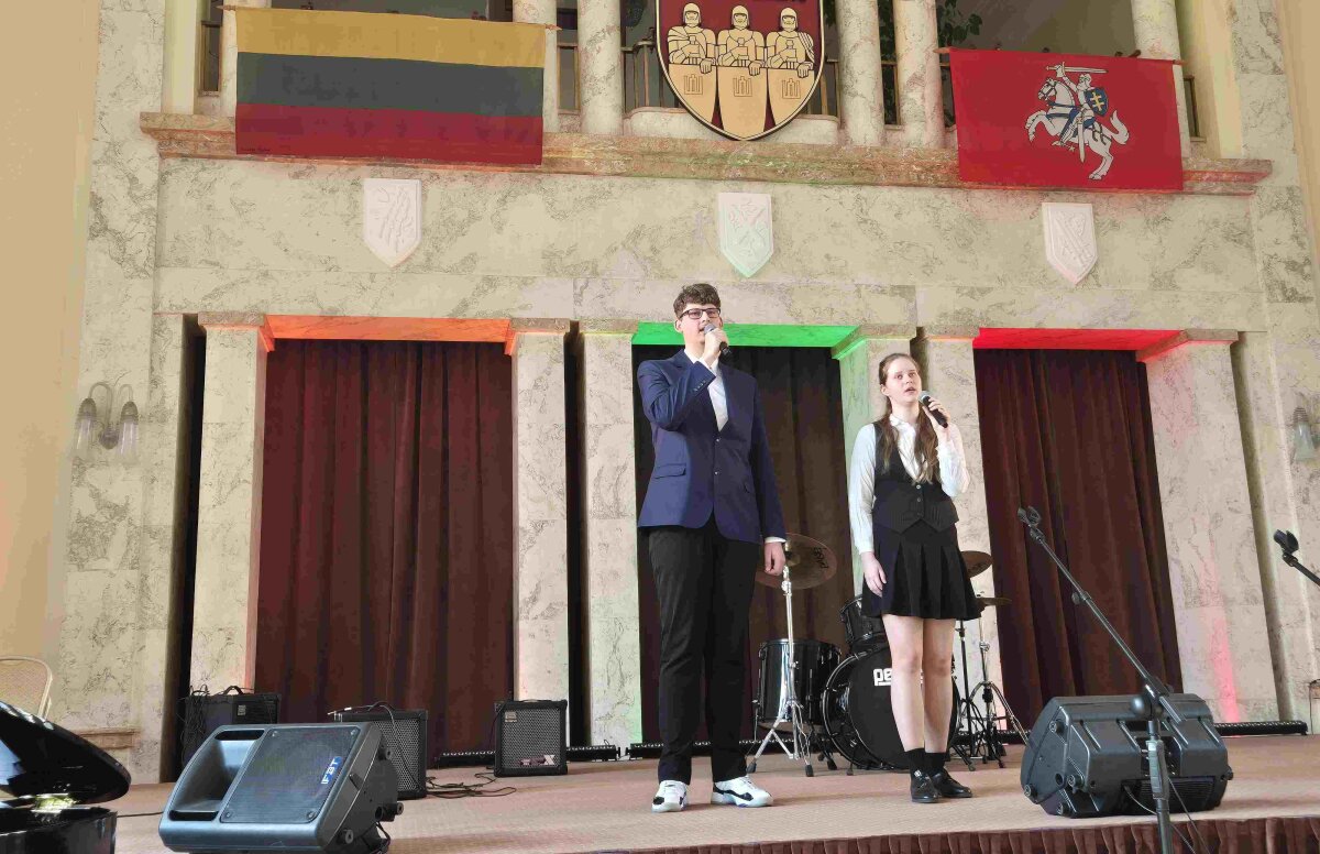 Ukmergės Jono Basanavičiaus gimnazijos dvyliktokai – Goda Žvirblytė ir Ignas Kacevičius kartu su muzikos mokytoja Neringa Valinskiene kovo 13 dieną dalyvavo Kauno karininkų ramovėje vykusioje apdovanojimų šventėje.