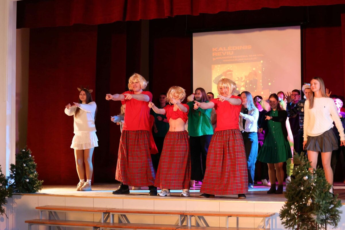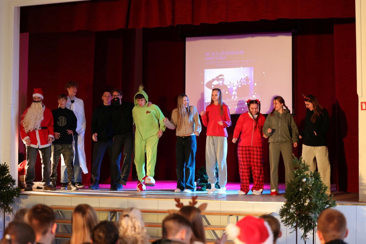 Po ilgo laiko gimnazijoje vėl vyko kalėdinis gimnazistų reviu, kuriame dalyvavo I-II klasių mokiniai. Klasės savo pasirodymuose analizavo piktojo kalėdinės istorijos personažo Grinčo elgesį ir siūlė jam įvairias išeitis: paklausyti dainų, prisėsti prie Kalėdų stalo, padovanoti dovaną ir net išklausyti. Taip pat mokiniai siuntė laiškus, šoko bei bandė Kalėdų senelio kantrybę. Laimei, viskas baigėsi gerai, o mokytoja Jūratė Gimbutienė įteikė prizus kalėdinio atviruko-sveikinimo konkurso nugalėtojams.