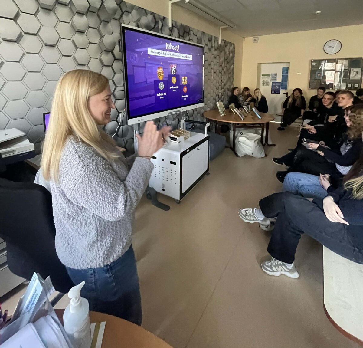 Penktadienio rytą gimnazijos kupole vyko miesto mokyklų PROTŲ MŪŠIS, kurį dr. Jo...